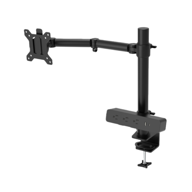 HiRobot Single Monitor Arm is designed with clamp/grommet mounting or freestanding types, integrated with power socket 3AC,1USB,1USB-C. It is easy to position your screen for comfort and productivity.