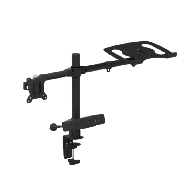 HiRobot Dual Monitor Arm is designed with clamp/grommet mounting or freestanding types, integrated with power socket 3AC,1USB,1USB-C and laptop. It is easy to position your screen for comfort and productivity.