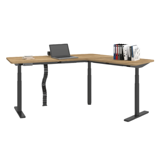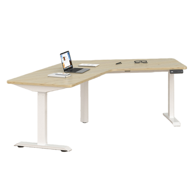 Height-adjustable tables come in various dimensions and configurations, including rectangular and L-shaped designs, to fit different spaces and meet diverse user needs.