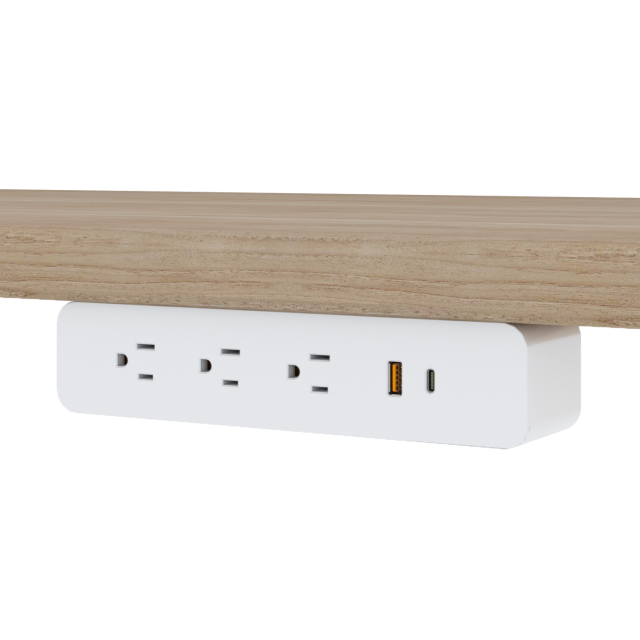 This under-desk power socket features USB charging capabilities. With three AC outlets, a standard USB-A port, and an advanced USB-C port, it delivers excellent performance for both commercial and residential use.