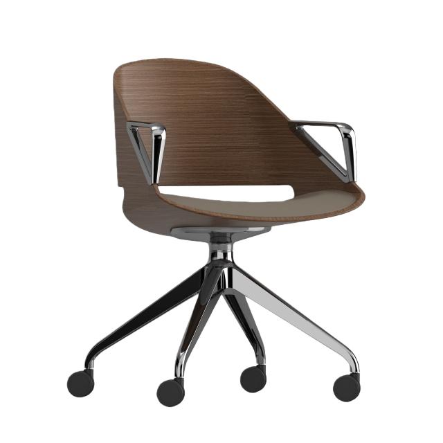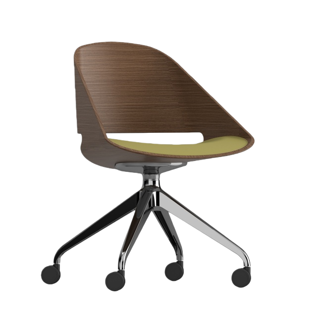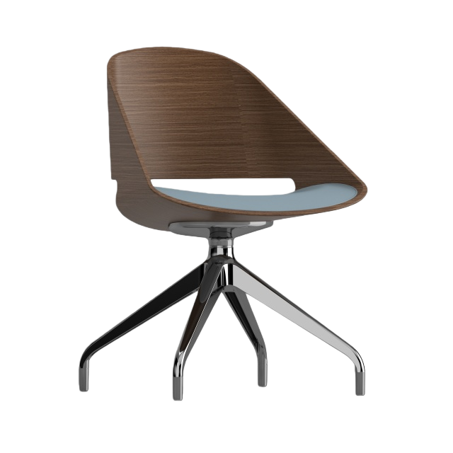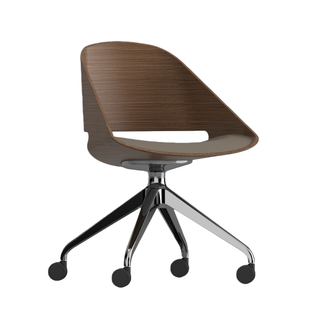 KUPPAn Exquisite Blend of Design and Craftsmanship. The authentic single-shell form of the Kupp chair is achieved through our proprietary manufacturing process, allowing wood veneer to be molded into intricate curves. Designed with an ergonomic pitched back, a swivel seat, and a padded upholstered seat pad, Kupp surprises with its eye-catching appearance and versatility. Whether used as a conference chair, lounge chair, leisure chair, side chair, or even a dining chair, Kupp is built to accommodate various needs. It is available in multiple wood finishes, steel base finishes, and fabric colors. Additionally, Kupp is BIFMA certified for commercial use, guaranteeing its quality and durability. | ![]() |